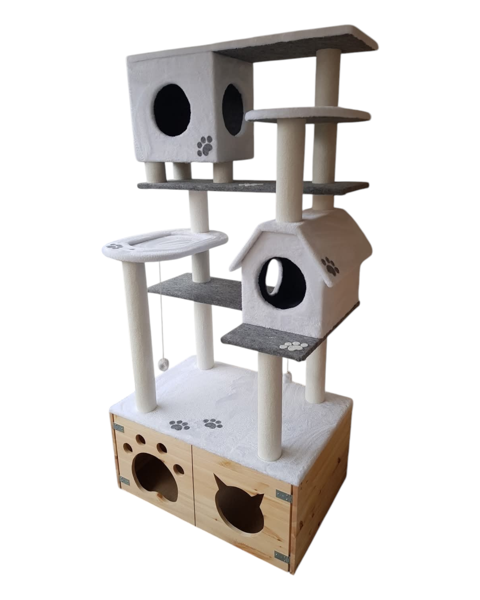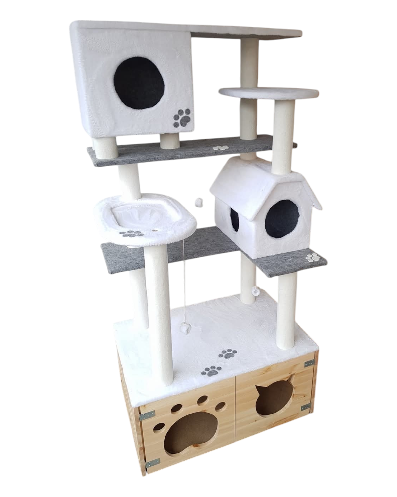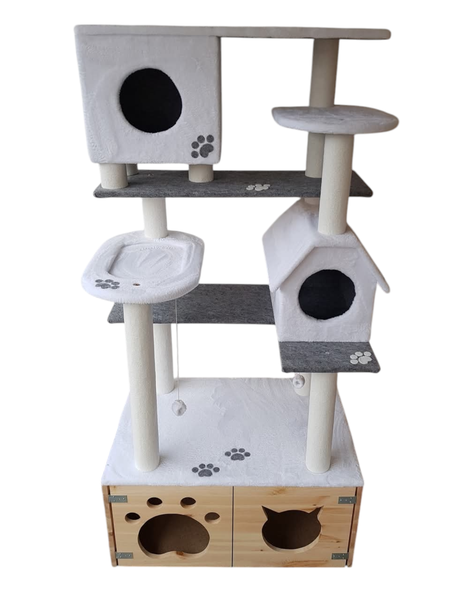- Three shelves specially designed for your kittens to lie down and nap comfortably, lined with soft, shaggy fabric